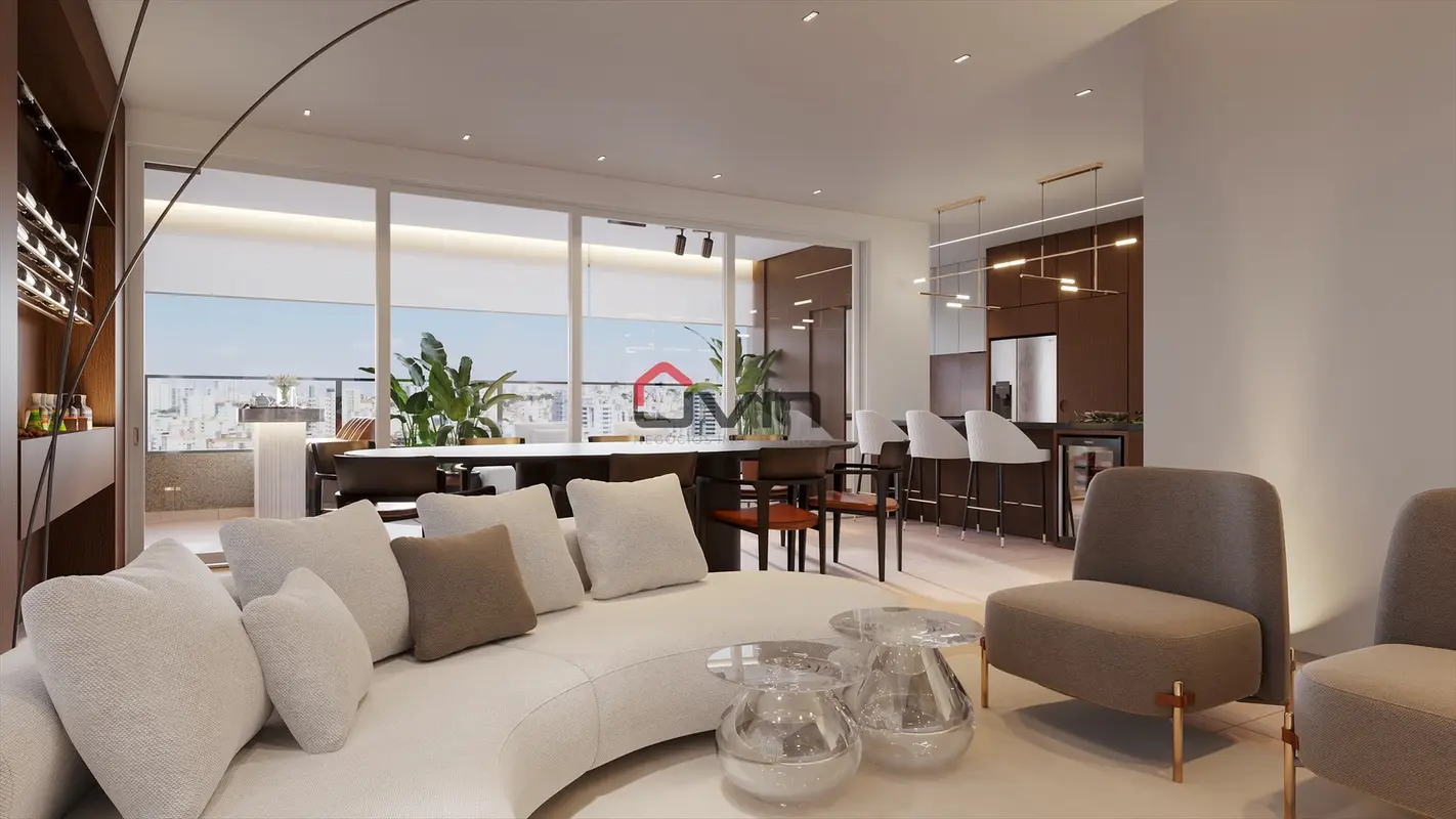 Com 3 suítes, com opção para 4 quartos, sala integrada a varanda gourmet. Além disso, o apartamento conta com lavabo e um banheiro na área de serviço, e 3 vagas de garagem.