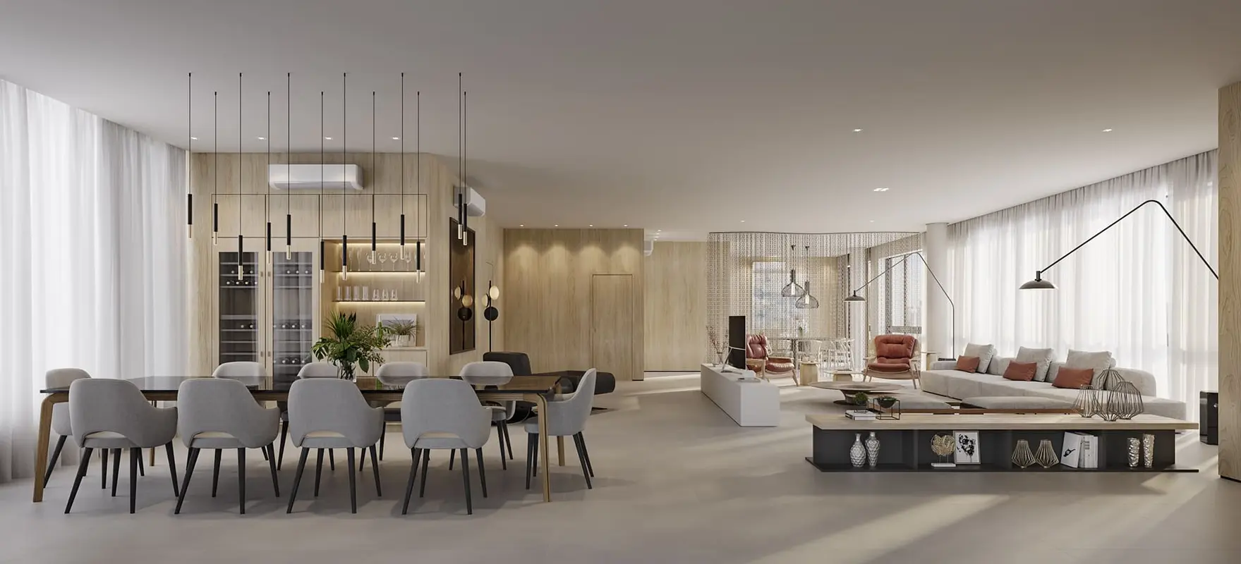 Apartamento de alto padrão oferece 4 suítes, amplas salas de estar e jantar, cozinha moderna, varanda gourmet e três vagas de garagem.