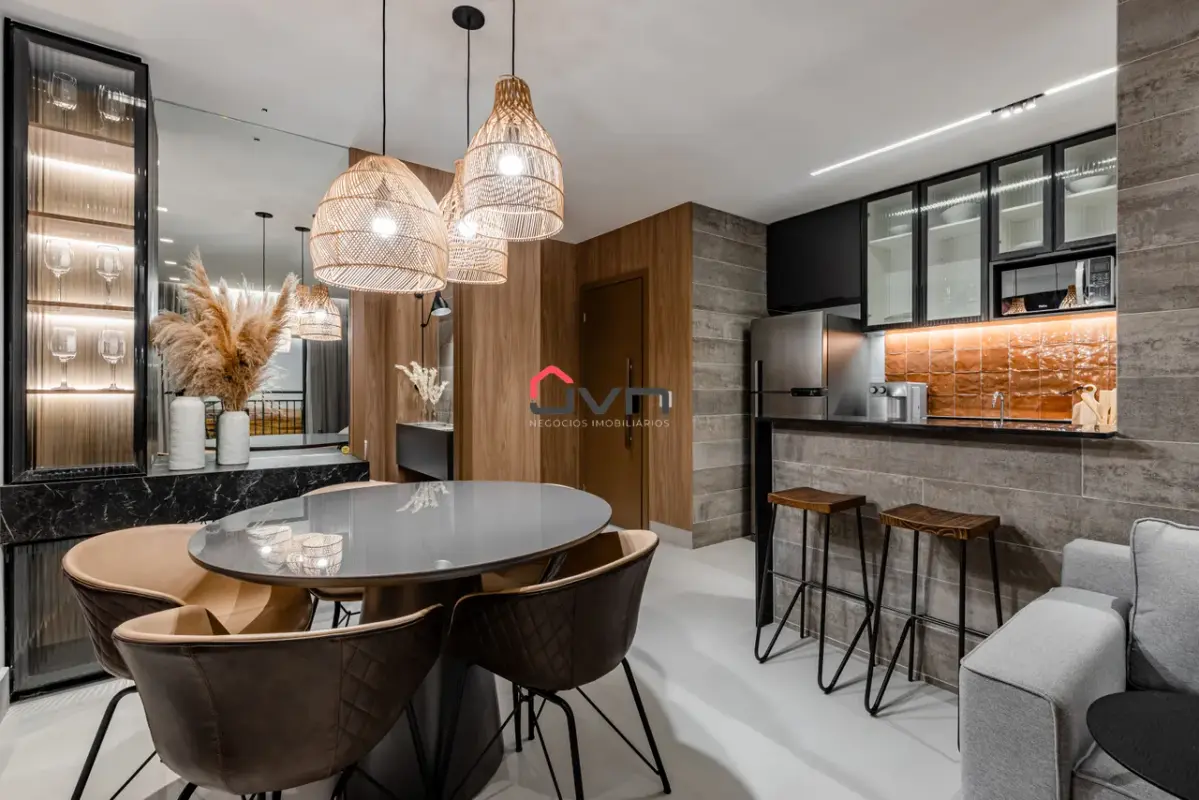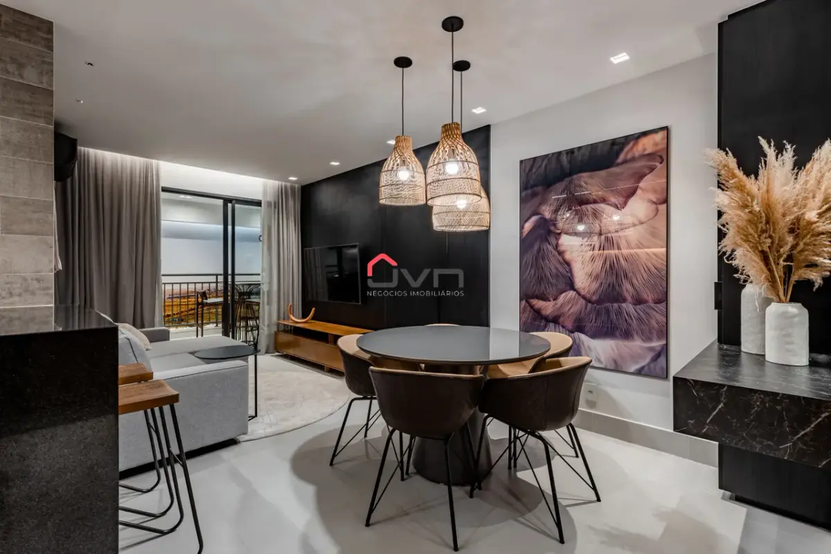 Apartamento de alto padrão com 3 quartos, incluindo 1 suíte com varanda e 2 semi-suítes, amplas salas de estar e jantar, cozinha moderna, varanda gourmet e 2 vagas de garagem.