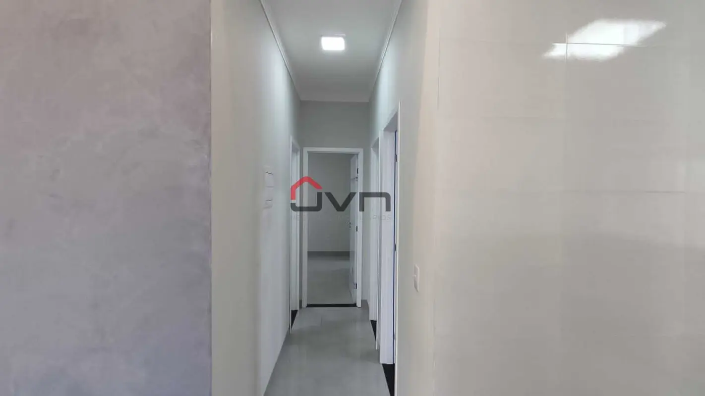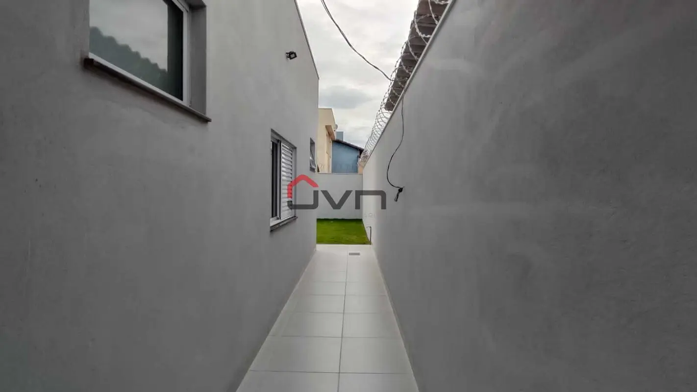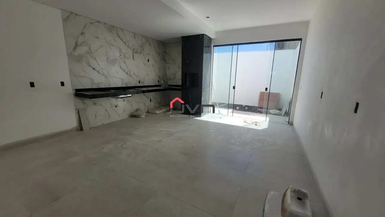 Contando com 3 quartos sendo 1 suíte, sala ampla, cozinha americana, banheiro social, garagem para 4 carros e quintal gramado.