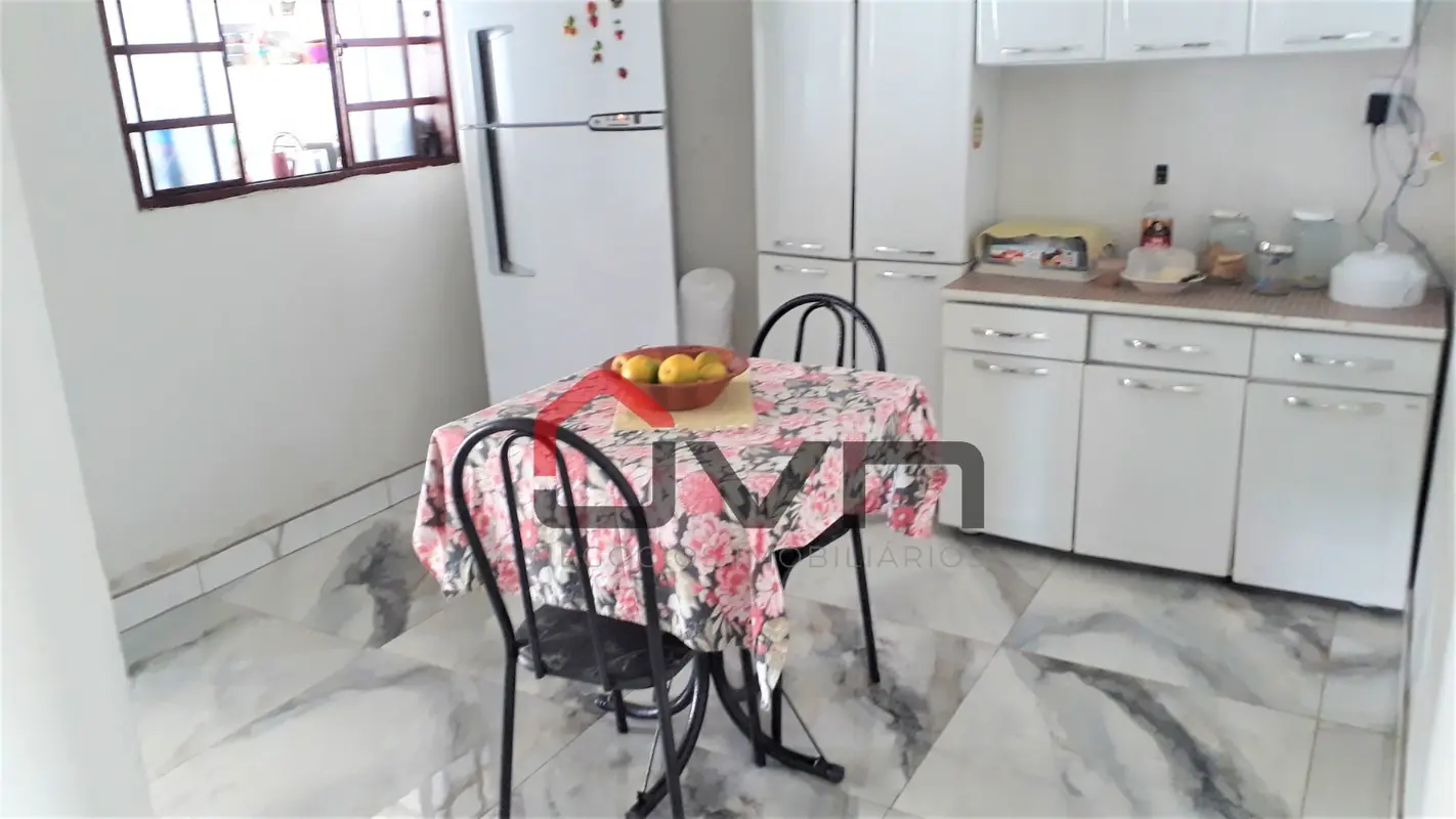 Contando com 3 quartos, sendo 1 suíte, banheiro social, sala, copa, cozinha, área de serviço e garagem para 2 carros.