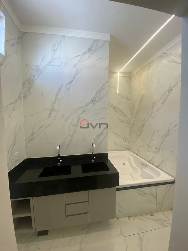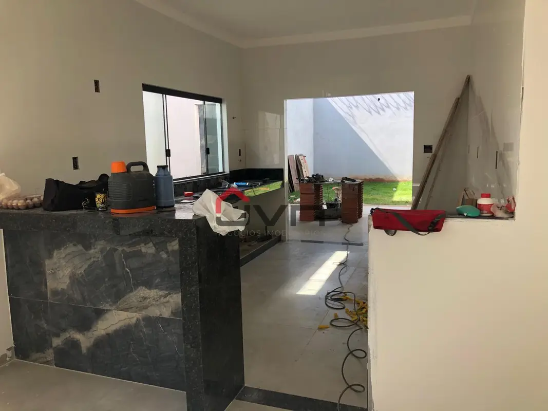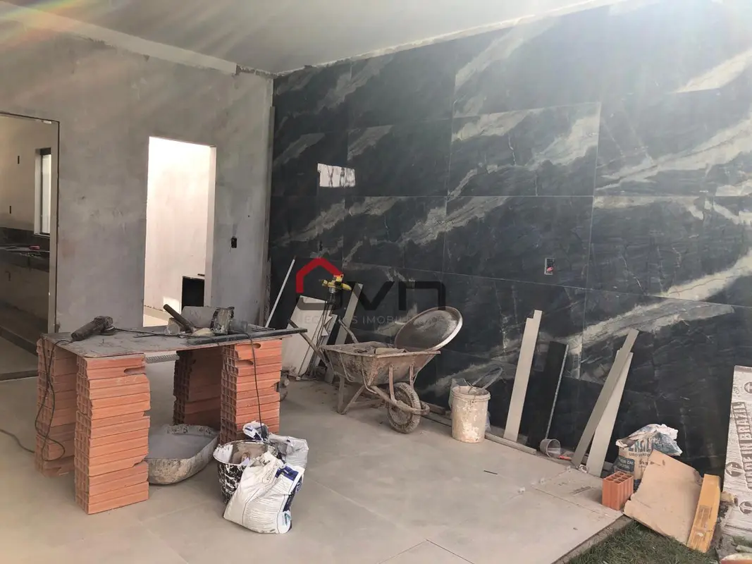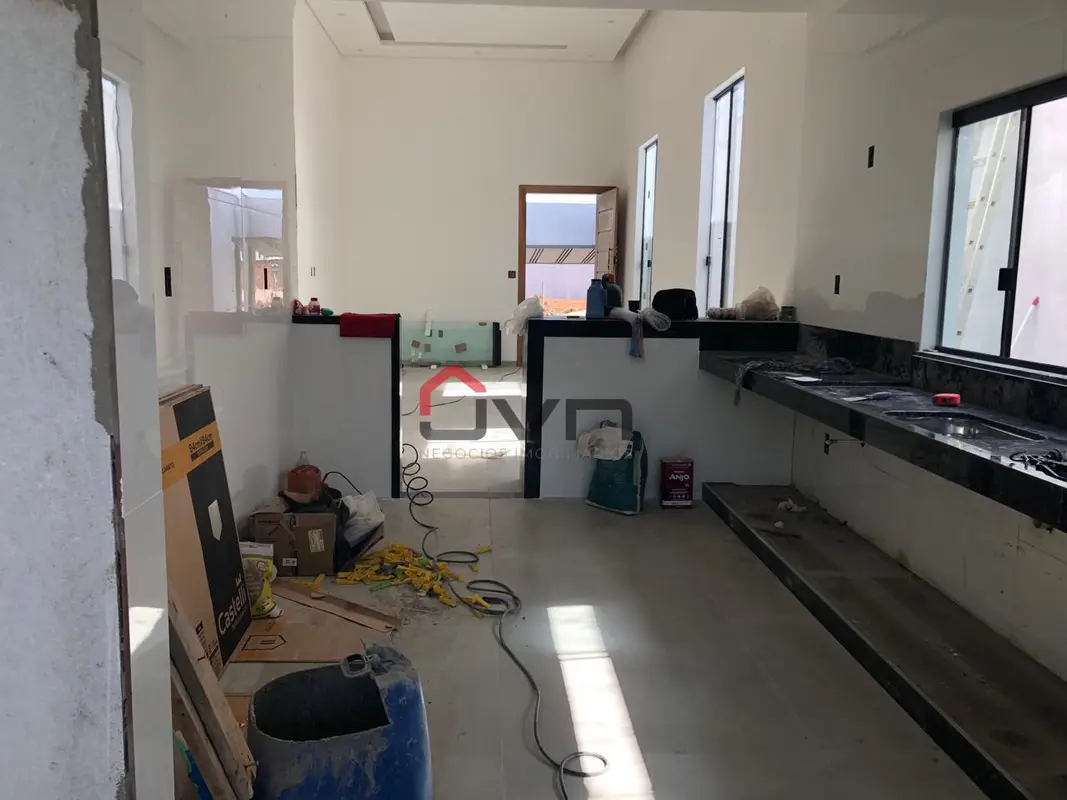 Uma bela casa a venda! Contando com 3 suítes, sala ampla, cozinha com bancada, lavanderia, varanda gourmet, lavabo, quintal e garagem para até 4 carros.