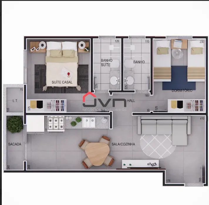 Conta ainda com um fino acabamento com piso em porcelanato e pé direito alto.