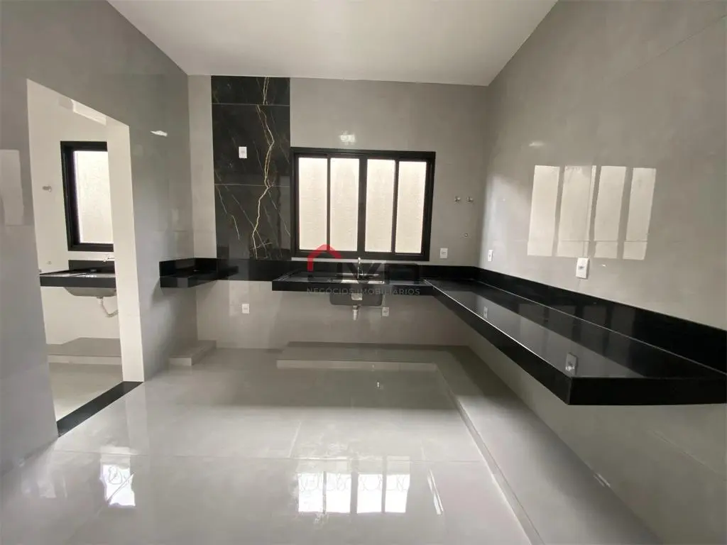 Contando com 3 suítes, banheiro social, cozinha, sala ampla com pé direito alto, lavabo, área de serviço, varanda gourmet com churrasqueira e vaga de garagem para 2 carros.