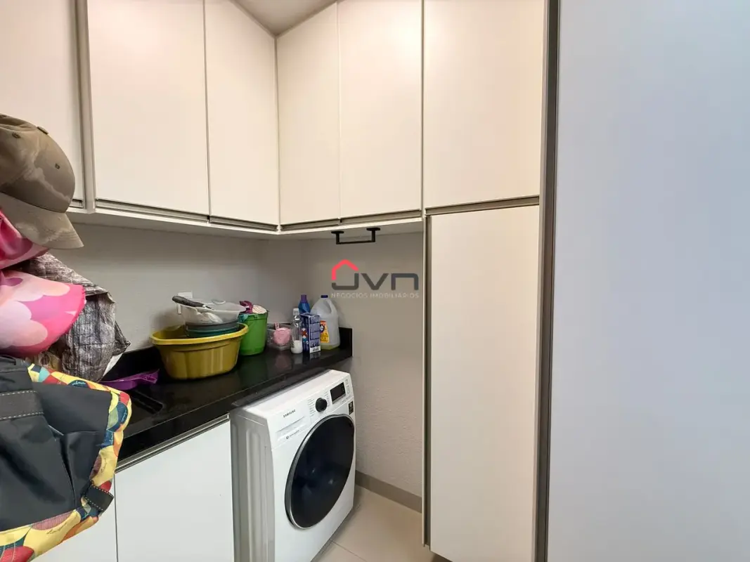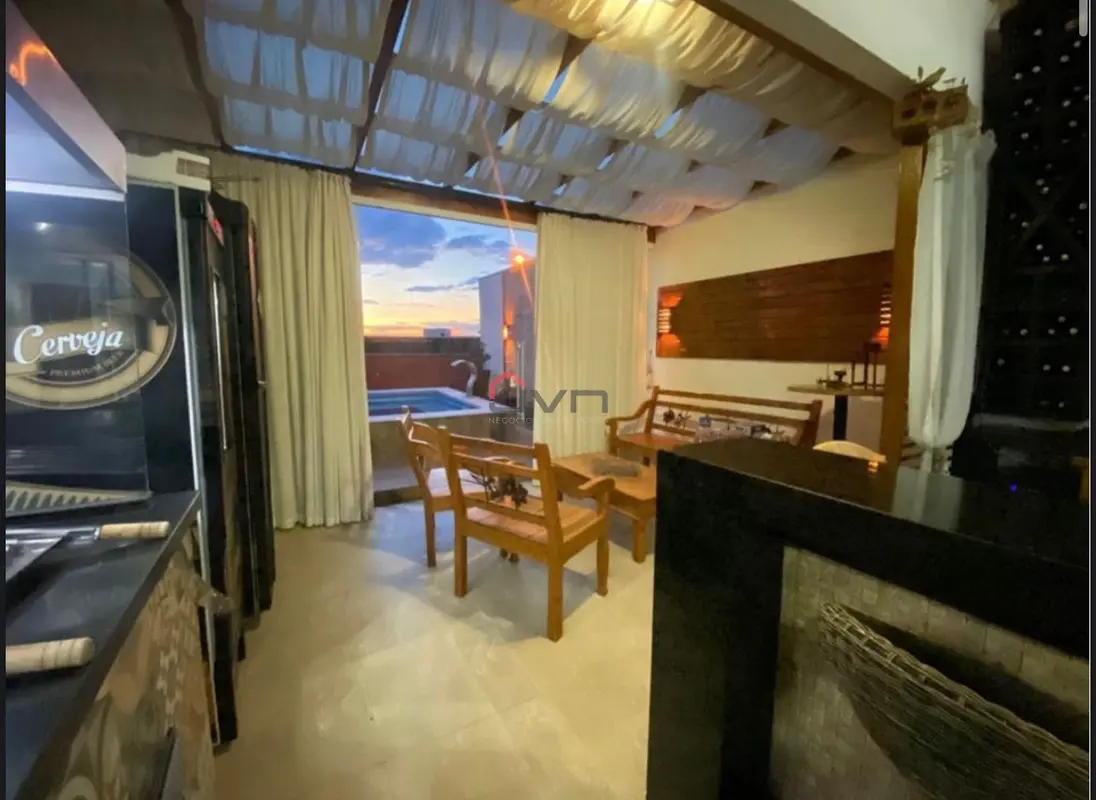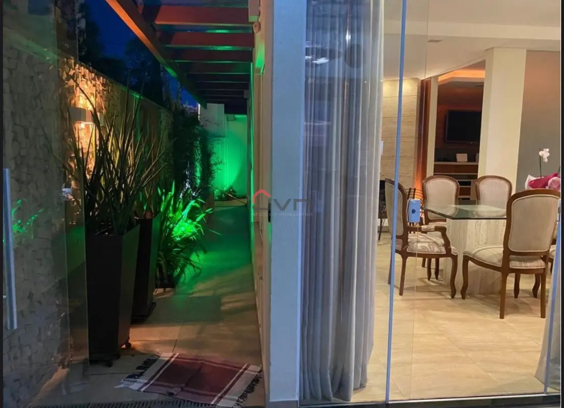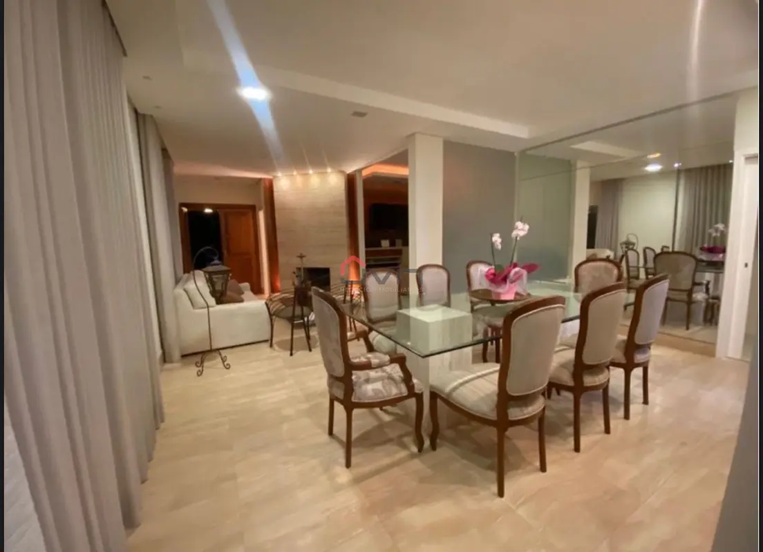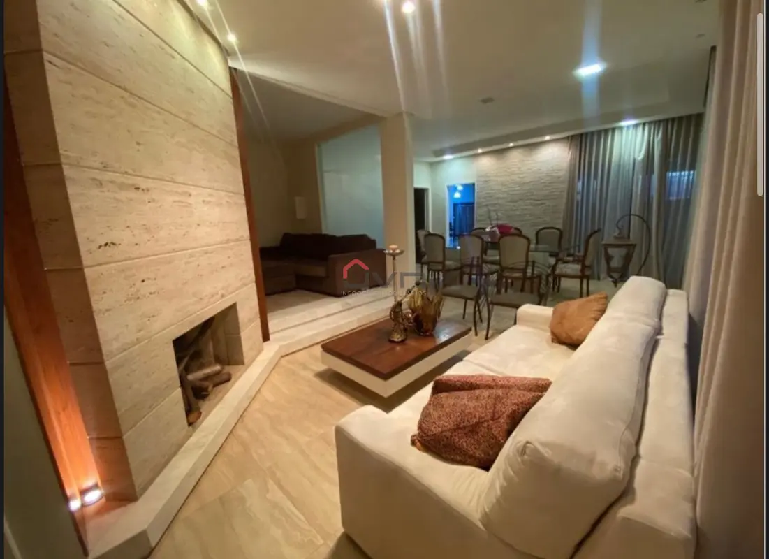 São 3 quartos sendo 1 suíte ambos com planejados, sala em 2 ambientes com painel e lareira, cozinha planejada, banheiro social planejado, espaço gourmet com churrasqueira e ofurô, área de serviço e 6 vagas de garagem.