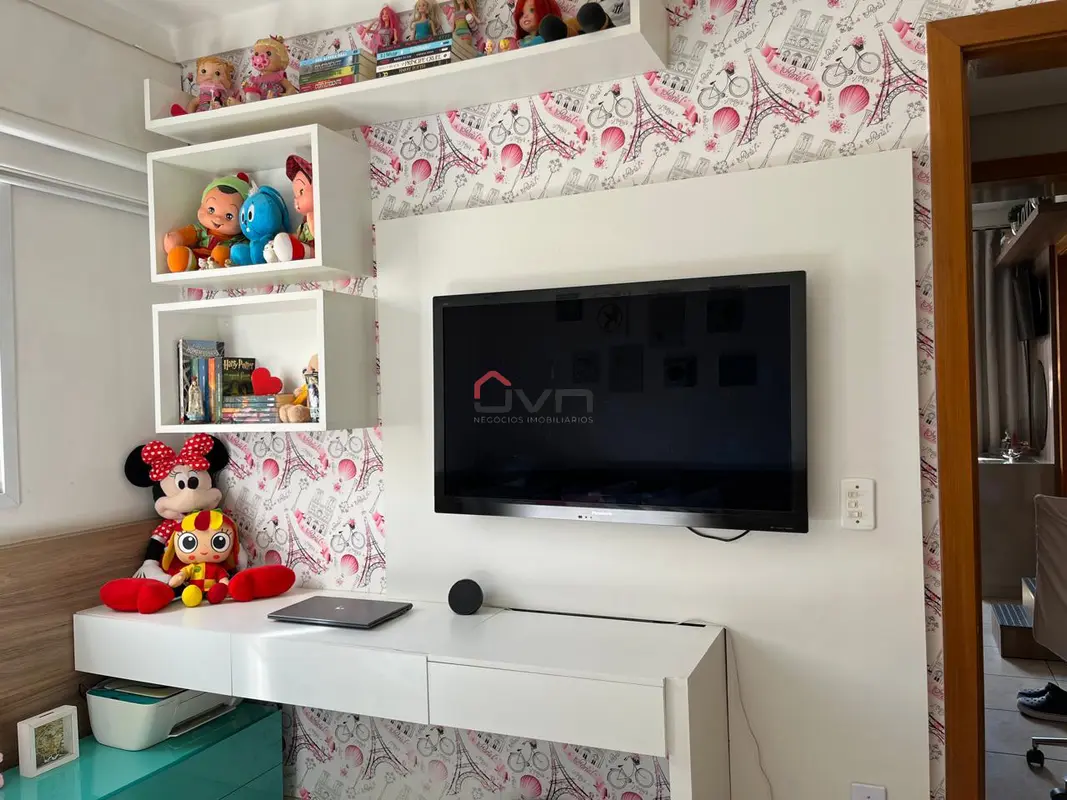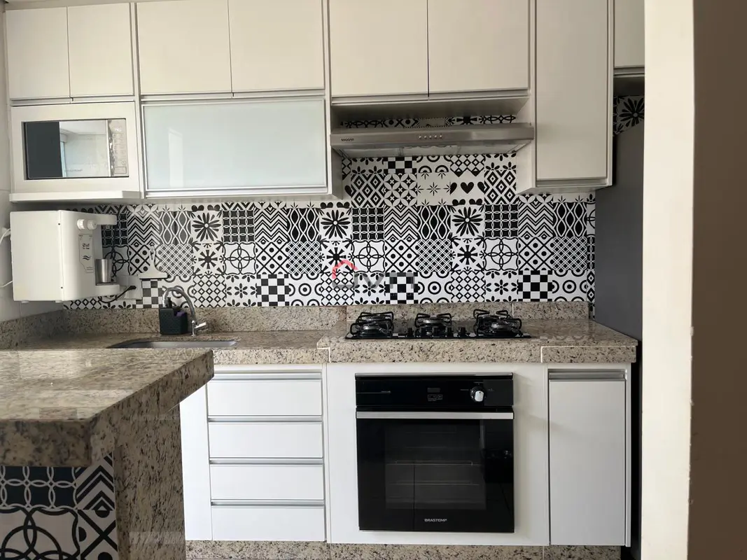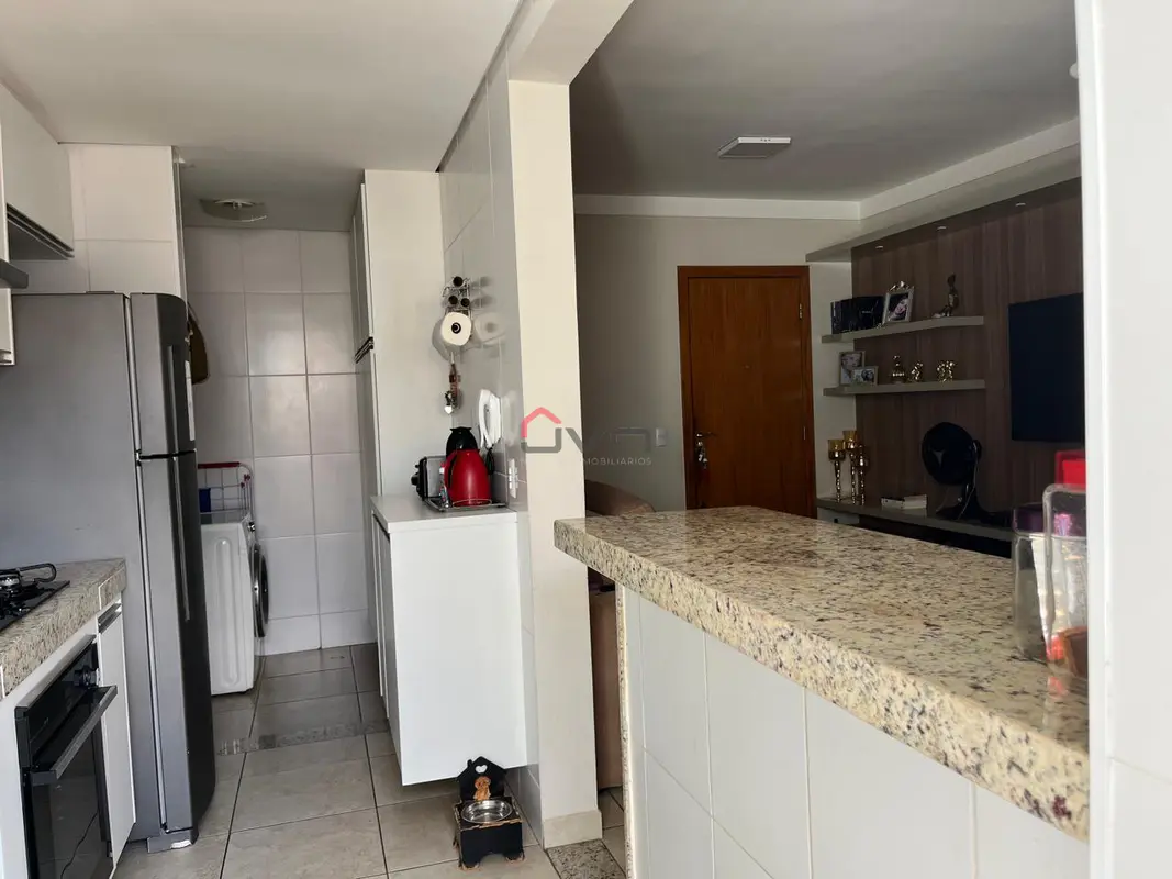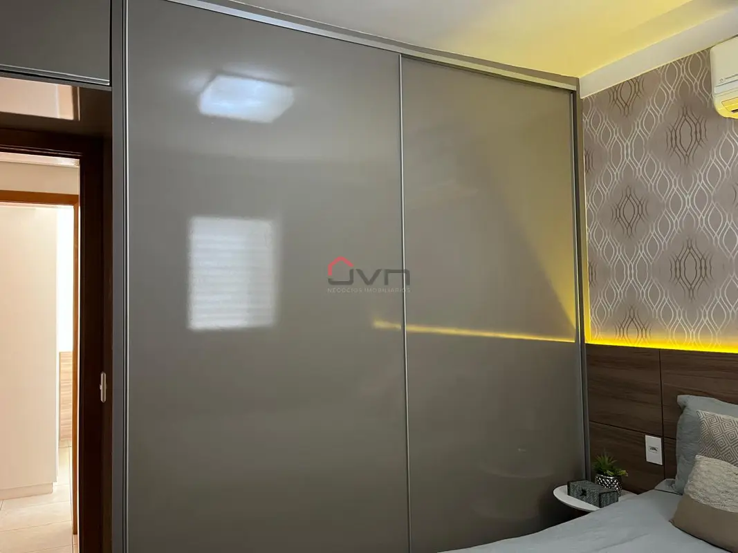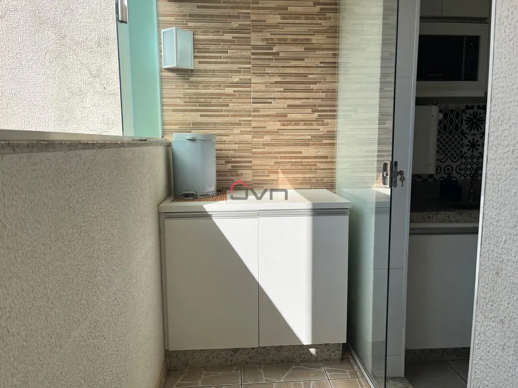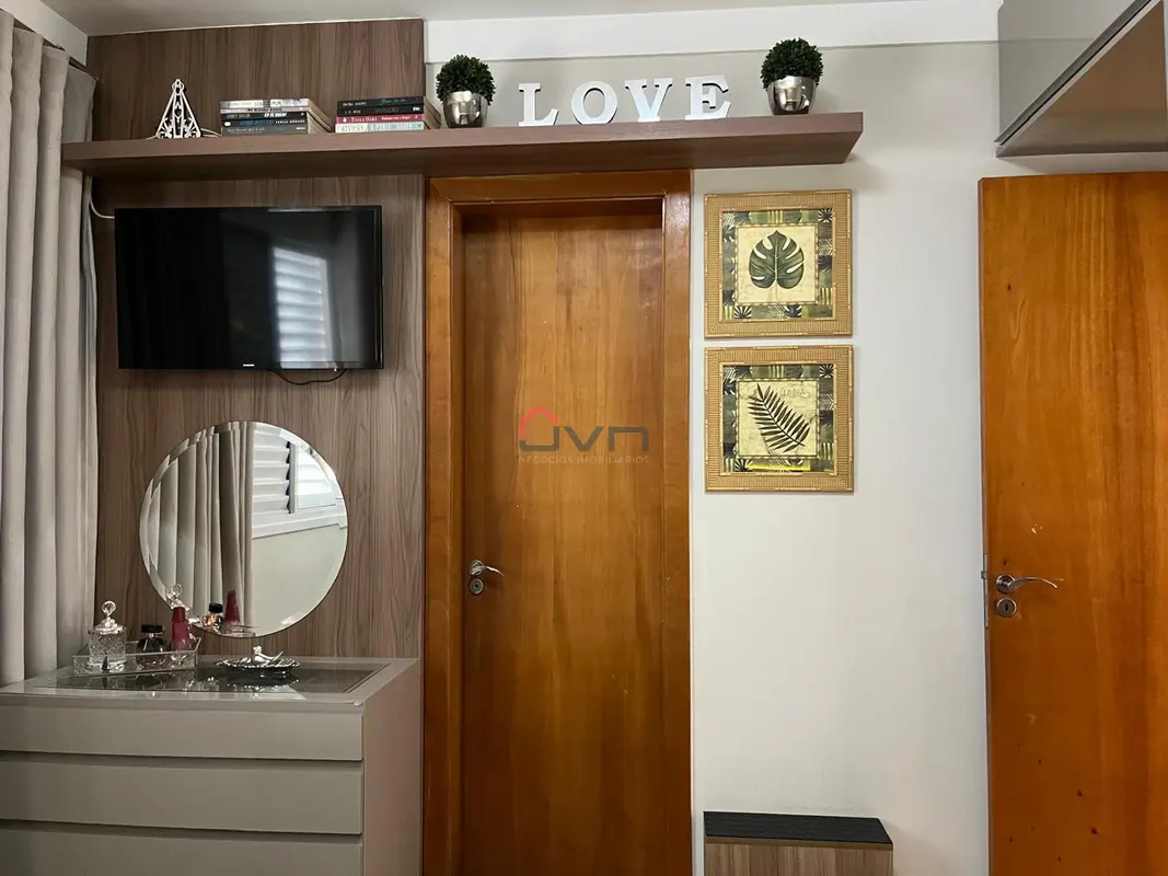 Apartamento com 2 quartos sendo 1 com suíte, sala com sacada, banheiro social, área de serviço e 1 vaga de garagem. Possui armários planejados em todos os cômodos.