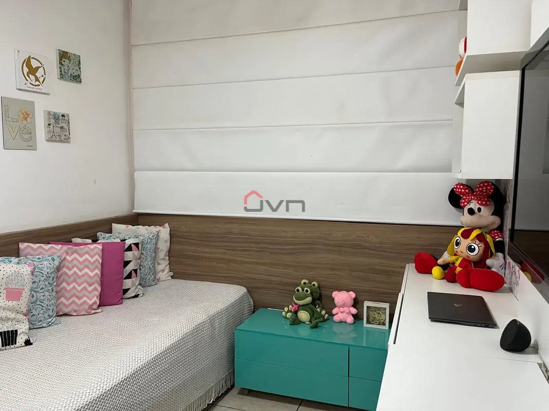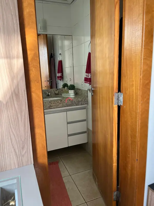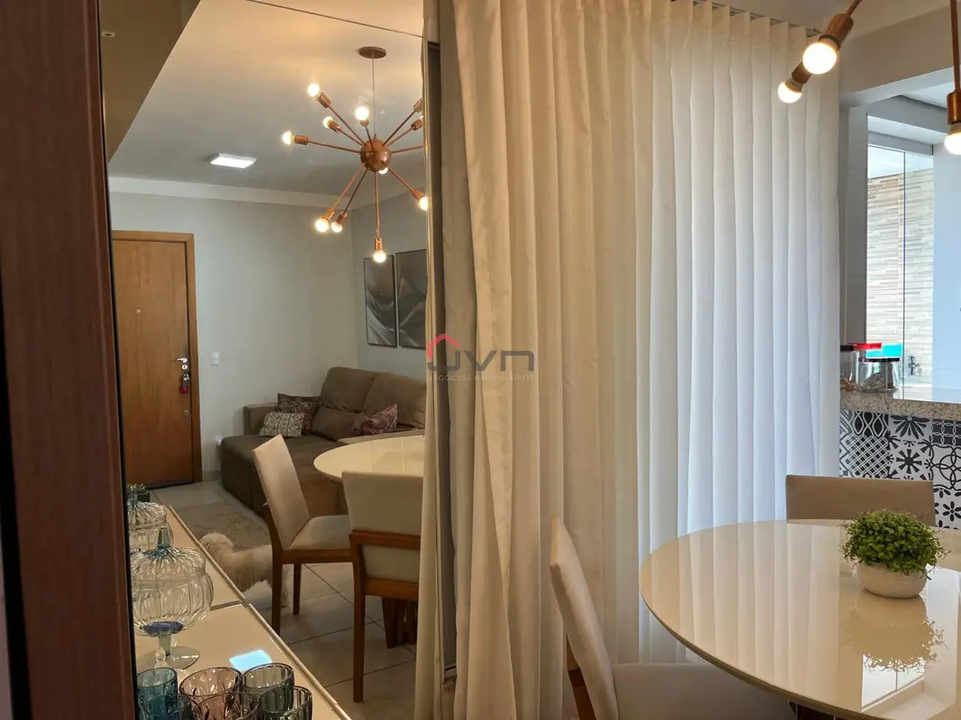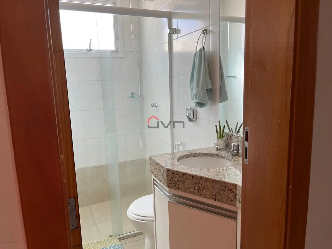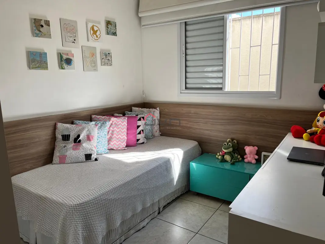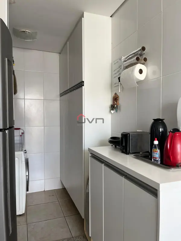 Apartamento com 2 quartos sendo 1 com suíte, sala com sacada, banheiro social, área de serviço e 1 vaga de garagem. Possui armários planejados em todos os cômodos.