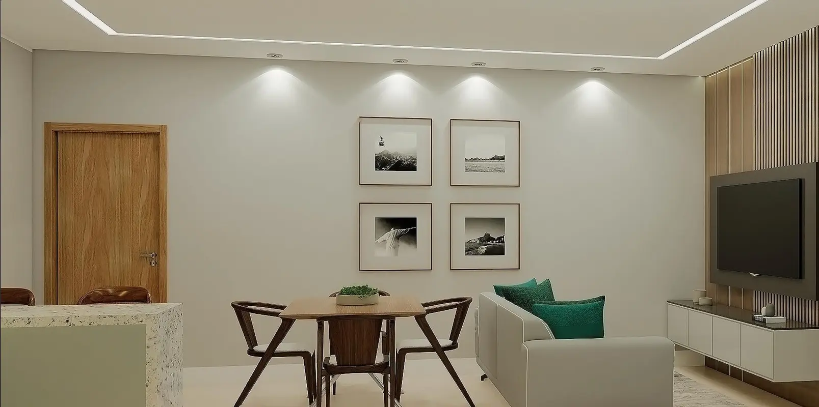 São 2 quartos, sala ampla, banheiro social planejado, cozinha planejada, área de serviço e 1 vaga de garagem.