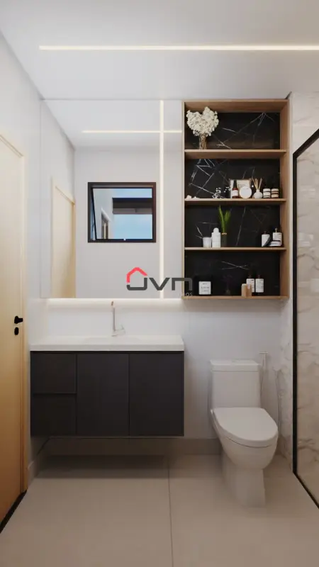 O condomínio é completo e seguro, com portaria 24h, cancela eletrônica, câmeras, cerca elétrica, minimarket, salão de festas, academia e muito mais.