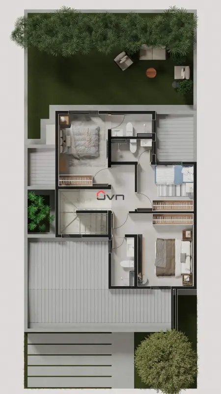 A casa conta com infraestrutura para a recarga de veículos elétricos, para a instalação de ar condicionado e possui aquecimento solar nos chuveiros, além de fechadura eletrônica nas portas.