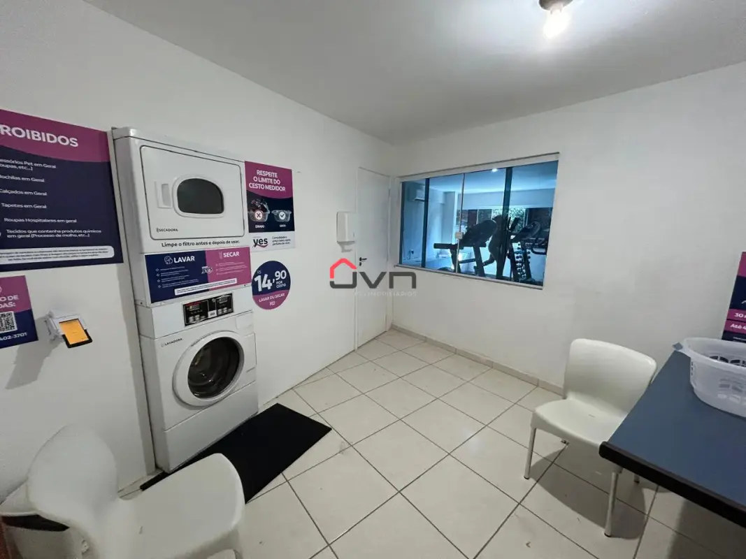 Condomínio completo com lavanderia, academia, mercadinho, elevador, piscina, salão de festas.