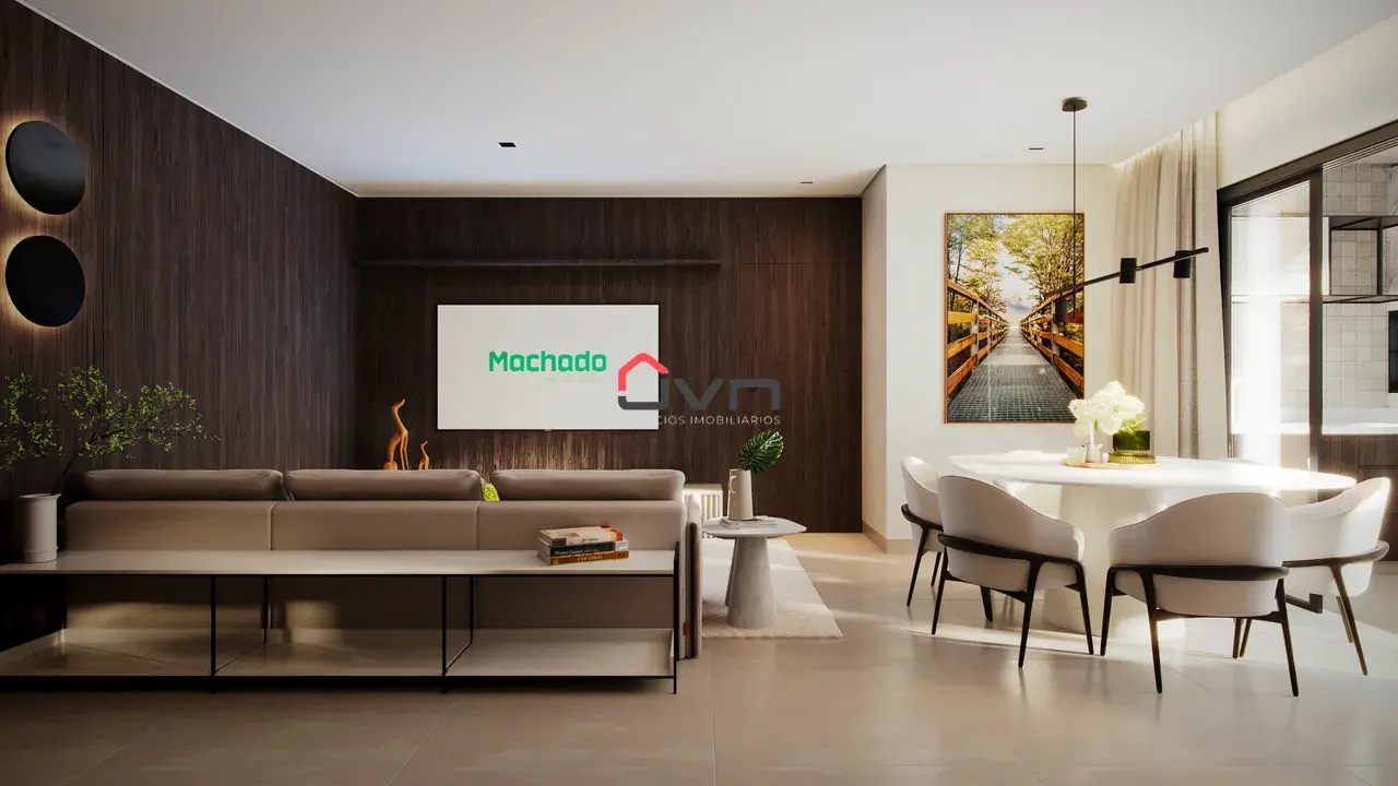 São apartamentos com 2 quartos, sendo uma suíte banheiro social, cozinha americana com área de serviço separada, salas amplas com sacadas, garagem para um carro.