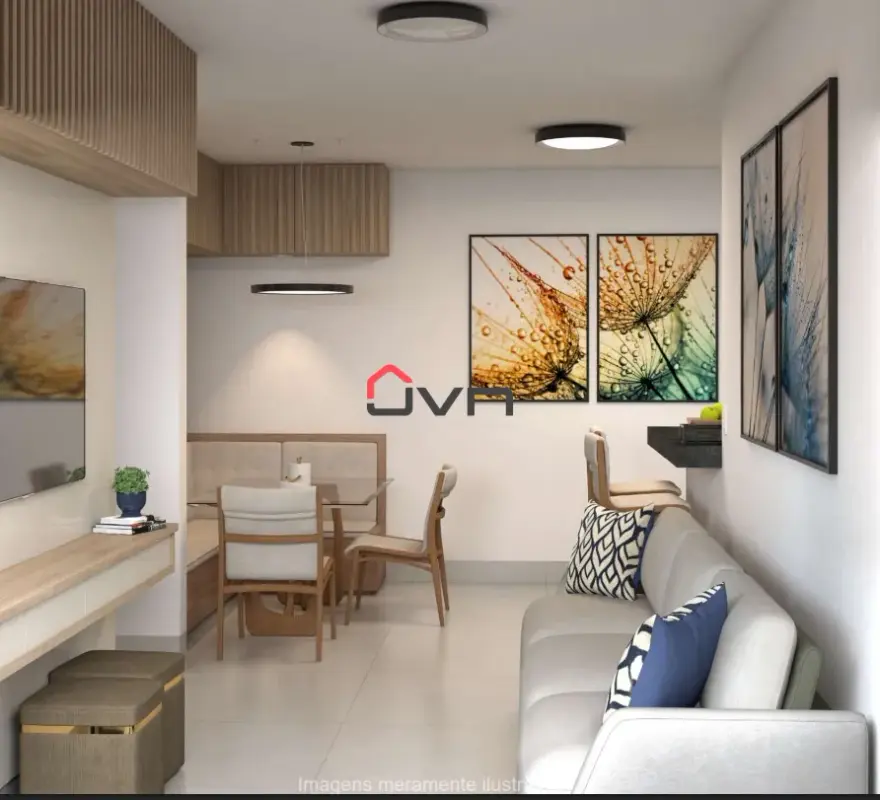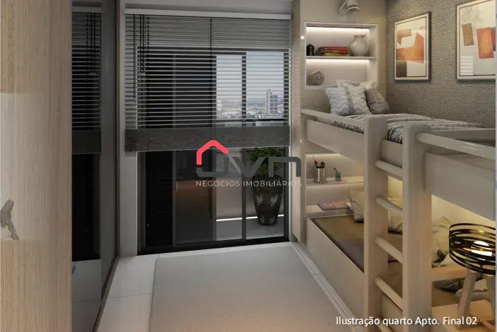 Com 2 quartos, sendo 1 suíte, banheiro social, sala ampla, cozinha americana, 1 vaga de garagem e algumas opções com vaga para 2 carros.