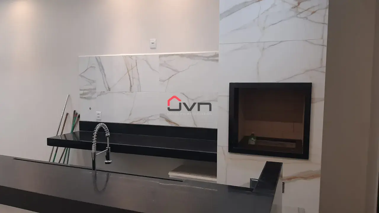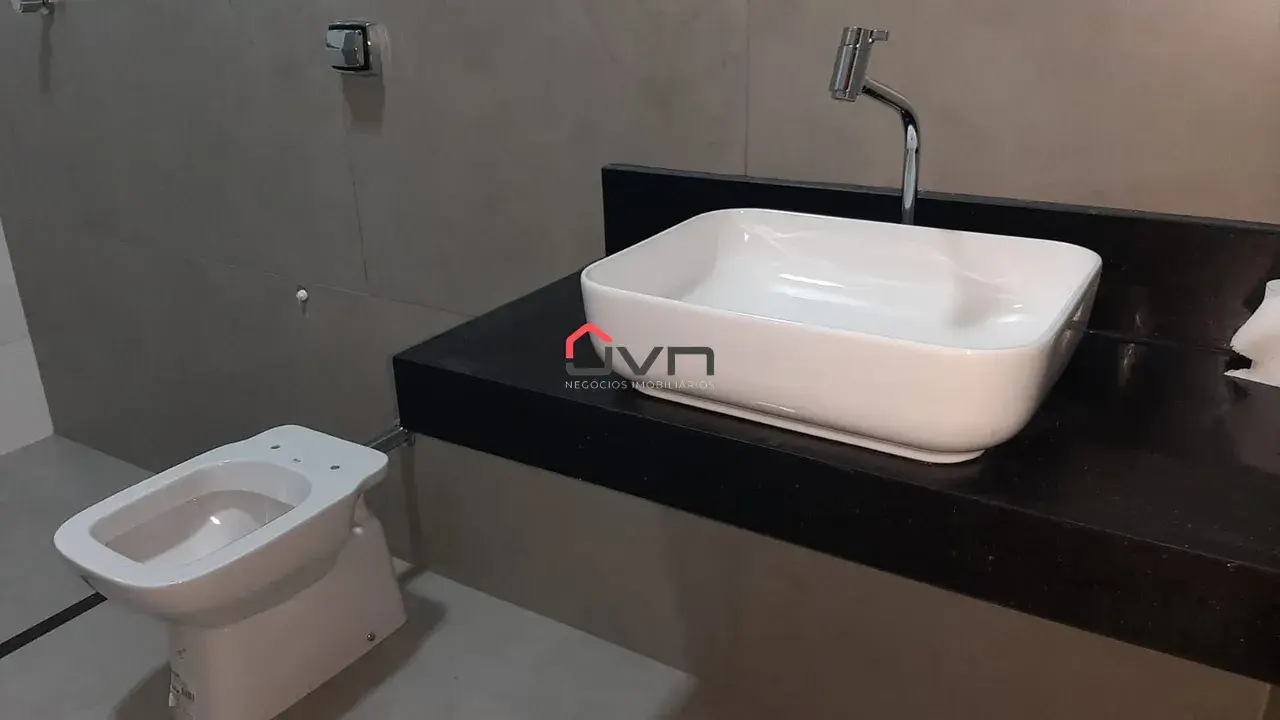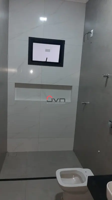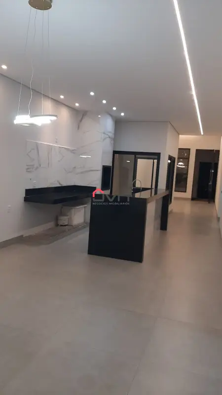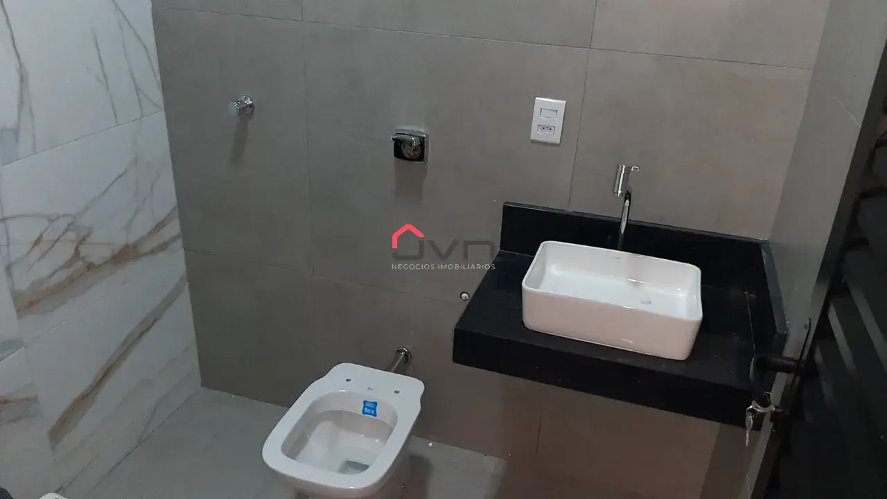 Casa nova com 3 quartos, sendo uma suíte, banheiro social, sala ampla com pé direto 4.50m, cozinha com varanda gourmet integrada com churrasqueira à carvão, lavabo e lavanderia separada. Vaga de garagem para 2 carros.
