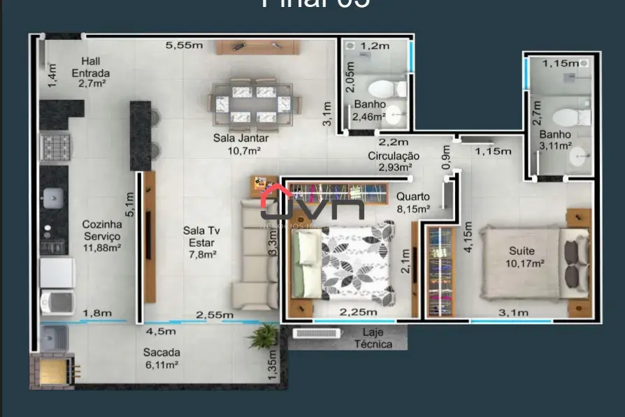 São apartamentos com 2 quartos, sendo 1 suíte, cozinha, lavanderia, salas amplas, varanda gourmet com churrasqueira, vaga de garagem para 2 carros.
