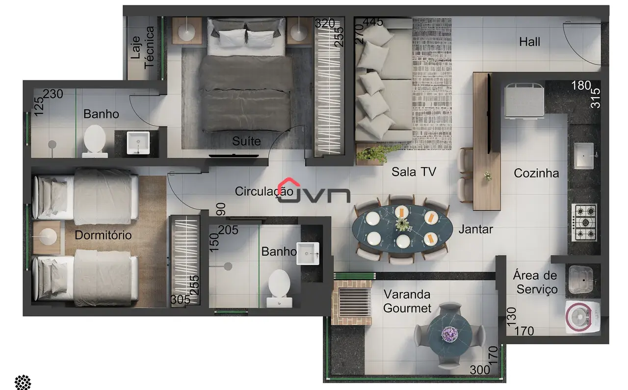 Sobrado localizado no bairro Jaraguá, com 03 quartos, sendo 01 suíte com sacada, banheiro social, lavabo, sala ampla em 02 ambientes, cozinha americana, varanda gourmet com churrasqueira, lavanderia, quintal e 02 vagas de garagem.
