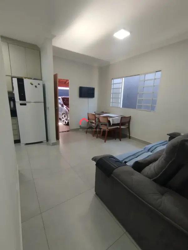 Casa localizada no bairro Jardim Holanda, com 03 quartos, sendo 01 suíte, banheiro social com box, sala ampla, cozinha com armários, área de serviço, quintal e 03 vagas de garagem.
