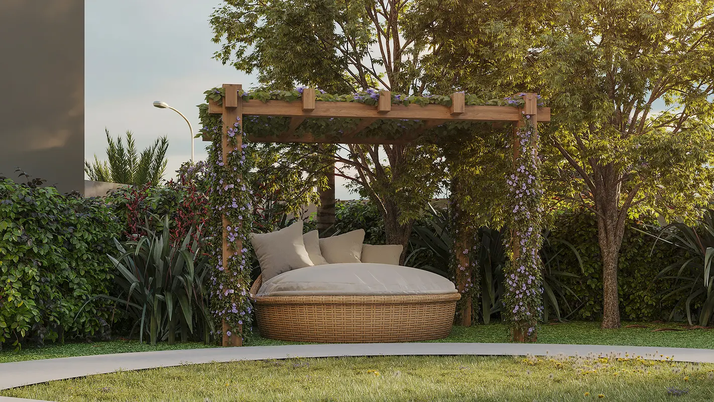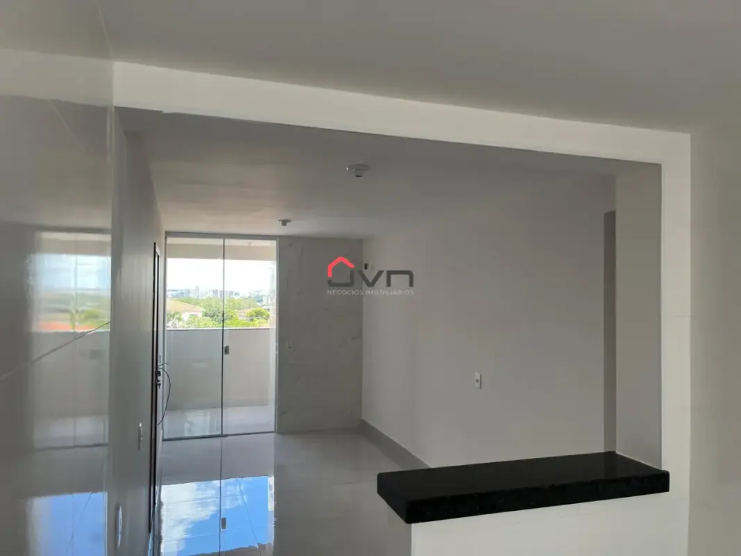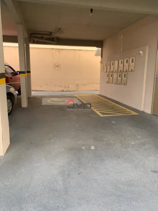 Apartamento de 2 quartos sendo uma suíte, banheiro social, sala, cozinha e lavanderia separadas com armários, e uma vaga de garagem.