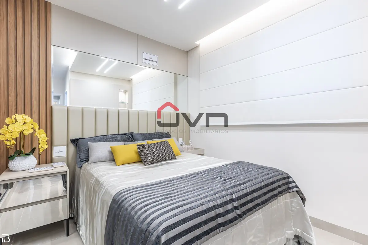 Contando com armários planejados em um quarto, cozinha, sala ampla, banheiro social com blindex espelho e gabinete, ainda com 1 vaga de garagem.