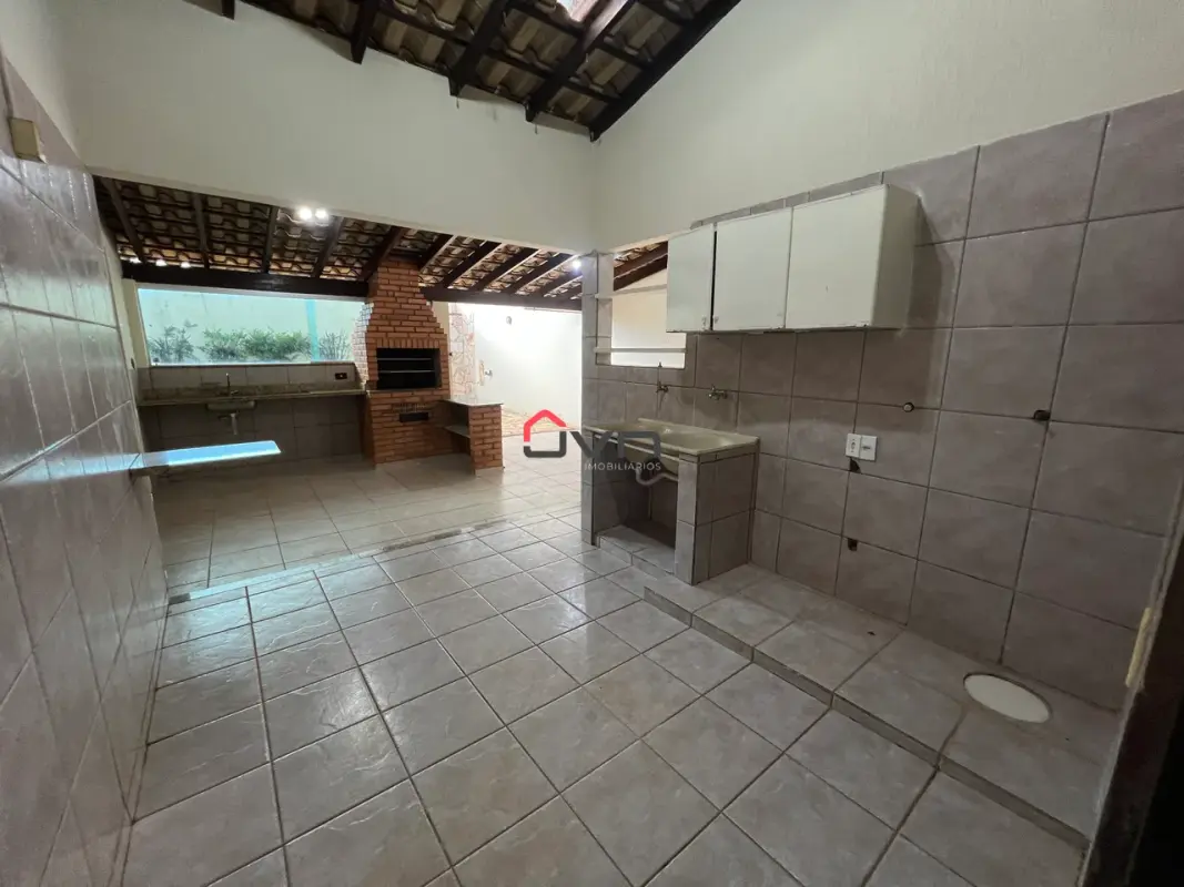 contando com 3 quartos sendo um suíte, lavabo, cozinha, 2 salas, varanda com churrasqueira, dispensa, banheiro social e quintal, 2 vagas.