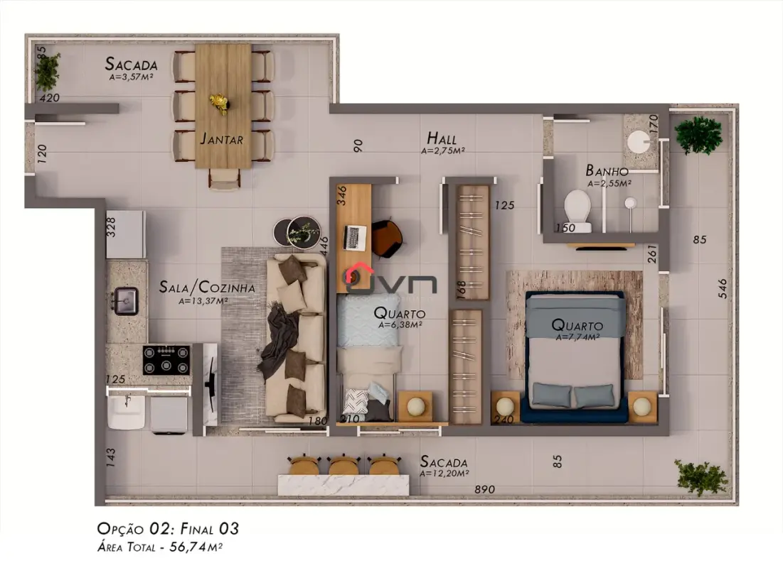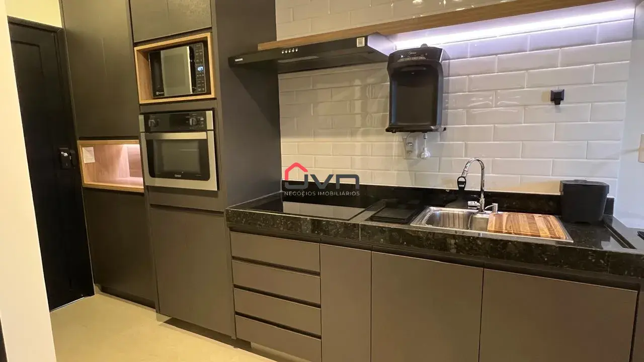 Contando com 2 quartos sendo um suite, sala ampla com sacada, cozinha americana, banheiro social, área de serviço e uma vaga de garagem.