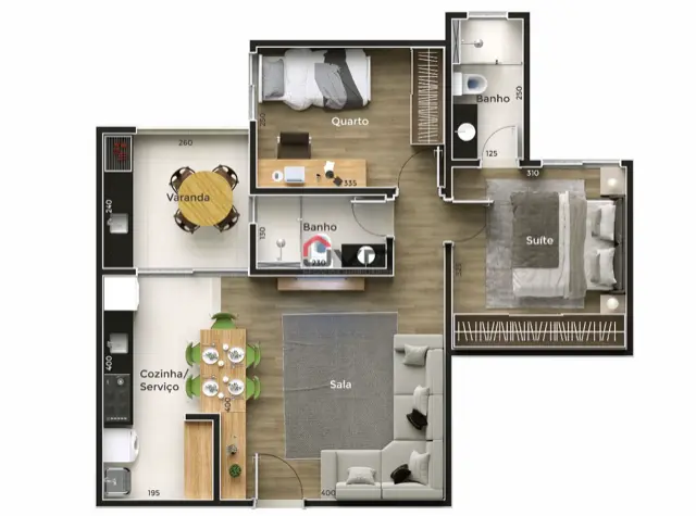 Contando com 3 quartos sendo duas suites, sala ampla, banheiro social, cozinha com área de serviço e duas vagas de garagem.