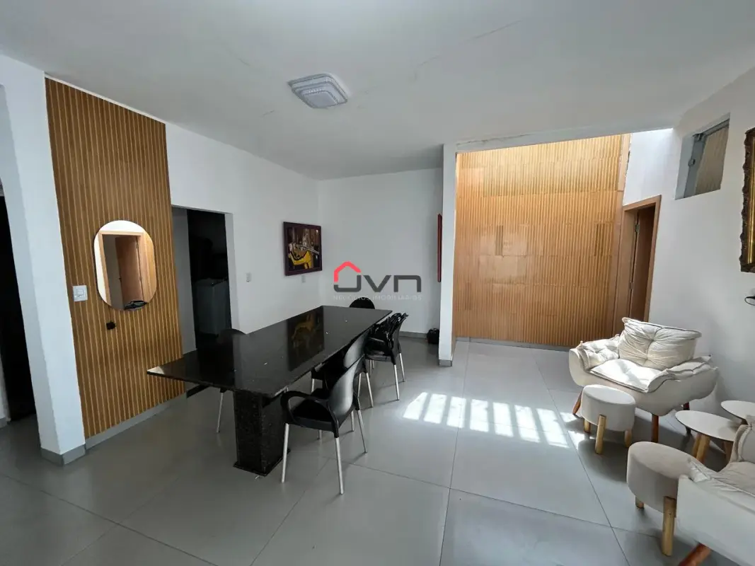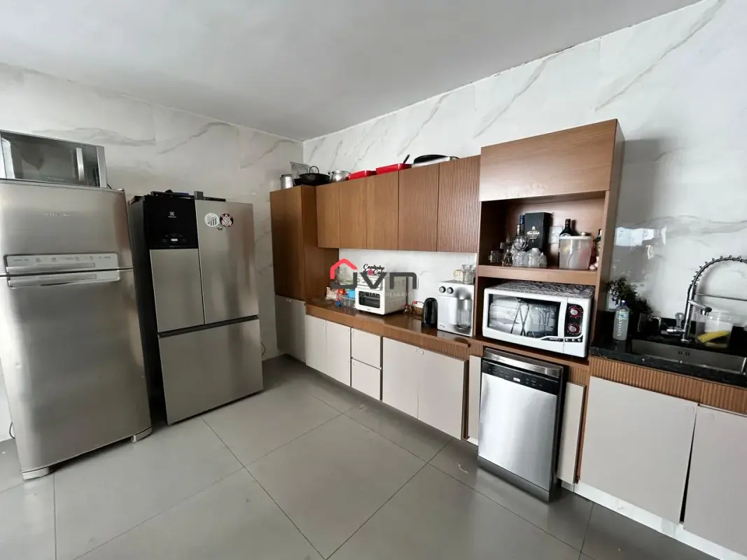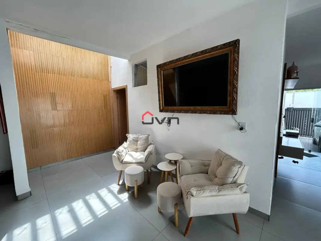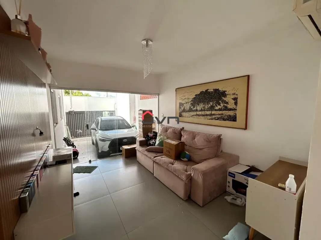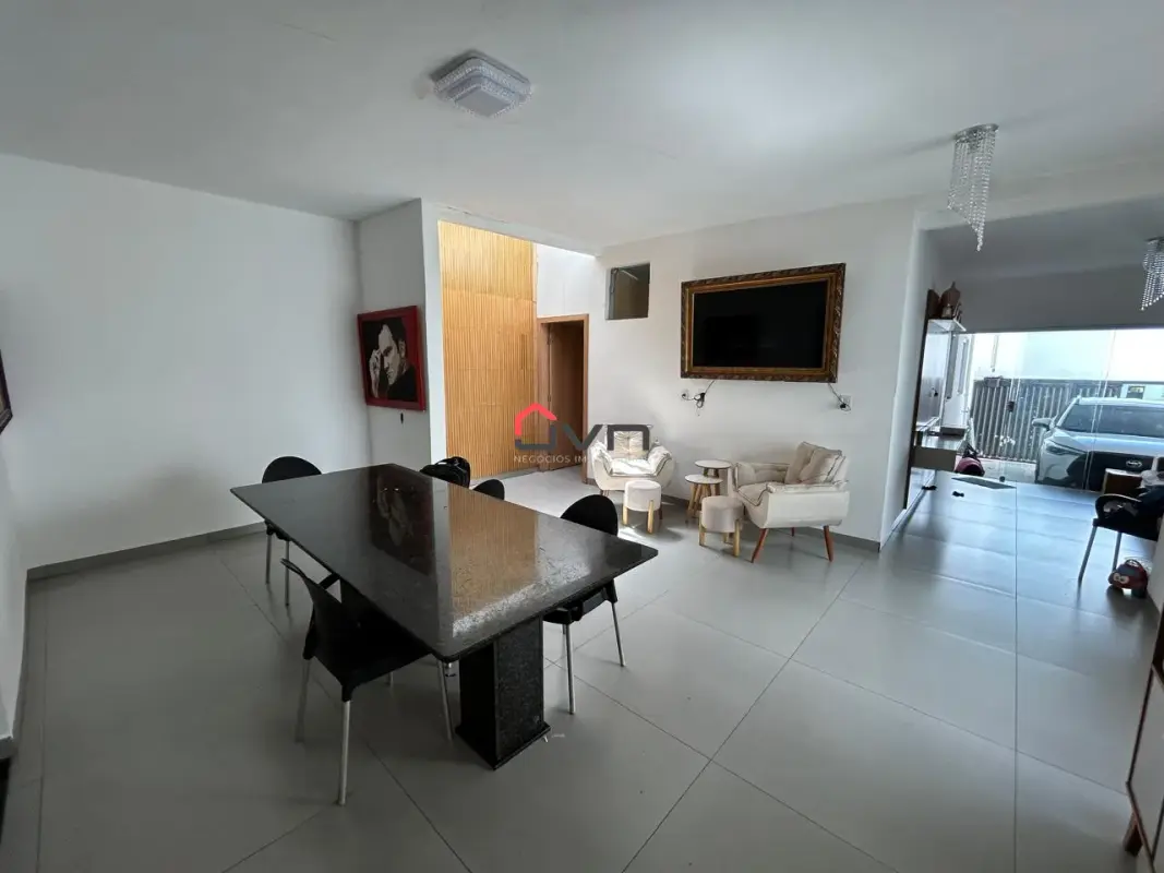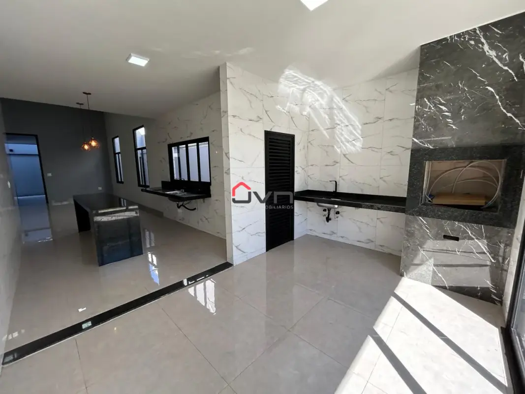 Contando com 3 quartos sendo um suite, sala em dois ambientes, cozinha gourmet integrada, banheiro social, área de serviço, dispensa, banheiro externo e duas vagas de garagem.