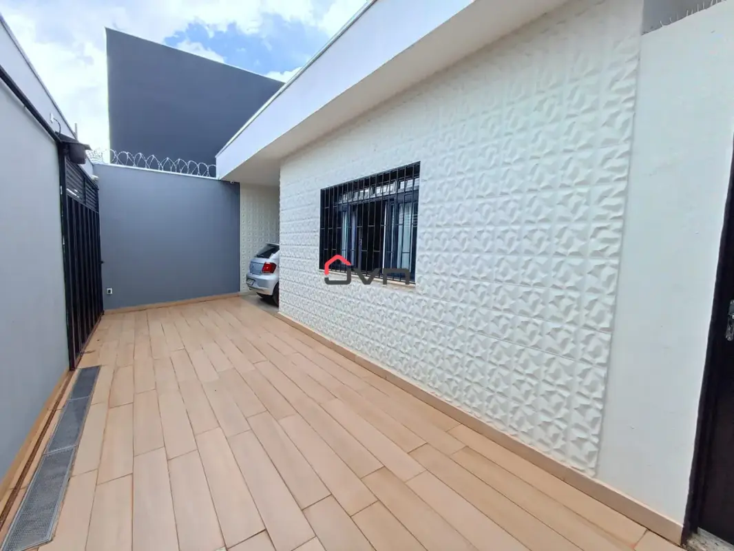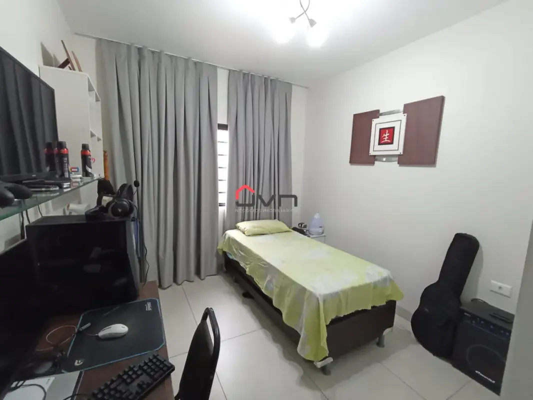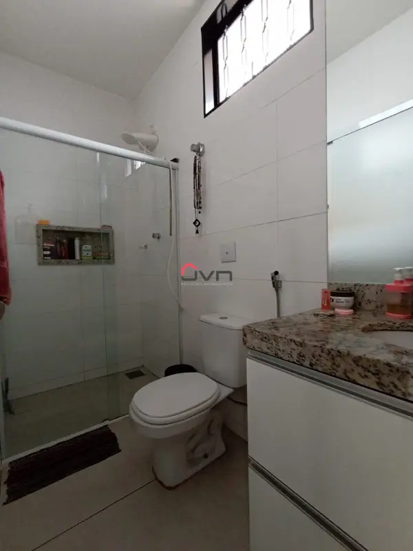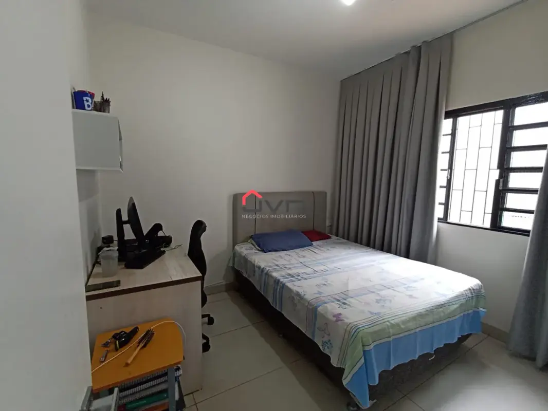 3 quartos sendo um suite, sala em dois ambientes, banheiro social, cozinha, área de serviço e duas vagas de garagem.